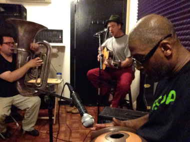"Next I concentrated on recording my acoustic guitar. Since I wasn't using bass on the record, I recorded the guitar with 2 or 3 mics capturing different frequencies with each for a full rich omnipresent guitar sound that you can feel in the body. I used a different arrangement for each song and brought in singer Anna Whitely, Cajun Accordian player Jonathan Larkin provides on Frankie and Name of the Song. Horn players Clark Gayton, Lawrence Clark and Jason Candler are all great NY jazz players and added a lot to this record. Lee Jaffee who played harmonica on Marley's Natty Dread album steps in to accompany Johnny on Blue ballad Try."